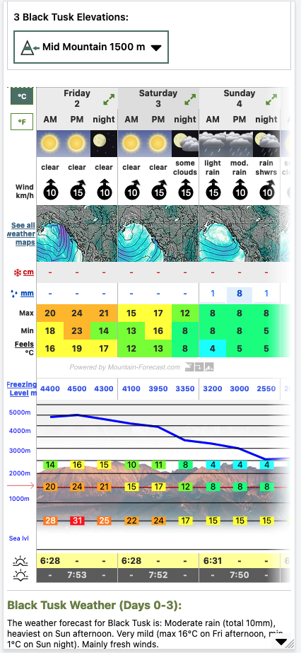 Screenshot from Mountain Forecast for Black Tusk - a great weather website for hikers